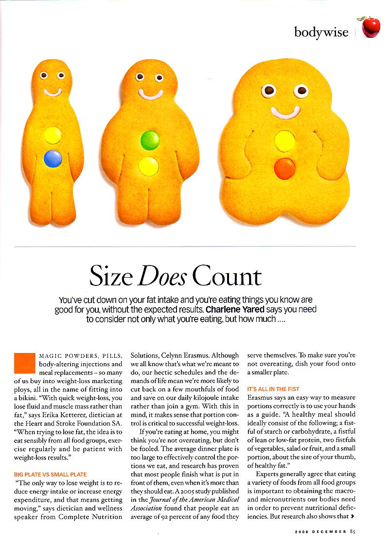 “The only way to lose weight is to reduce energy intake or increase energy expenditure, and that means getting moving!” says dietician and wellness speaker of Complete Nutrition Solutions, Celynn Erasmus. Although we all know that’s what we’re meant to do, our hectic schedules and the demands of real life mean we’re more likely to cut back on a few mouthfuls of food and save on our daily caloric intake rather than join a gym. With this in mind it makes sense that portion control is critical to successful weight loss. If you’re eating at home, you might think you’re not overeating, but don’ be fooled. The average dinner plate is actually too large to effectively control the portions we eat and research has proven that most people finish what is put in front of them, even when it’s more than they should eat. A 2005 study published in the Journal of the American Medical Association found that people eat an average of 92% percent of any food they serve themselves. To make sure you’re not overeating, dish your food onto a smaller plate and, even if it is filled to the edge, you’ll automatically be eating less.
