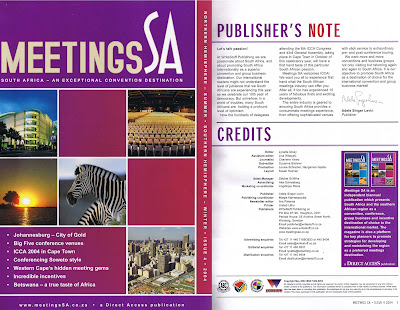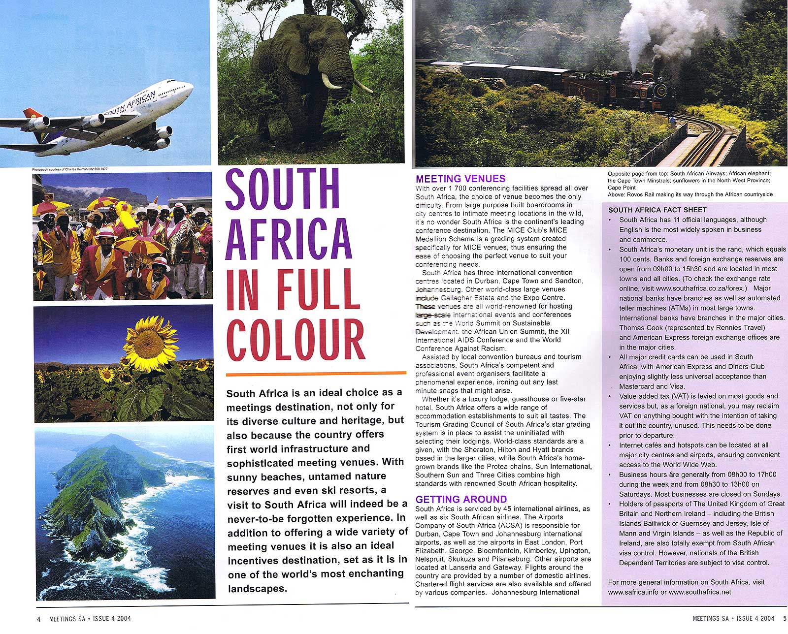 South Africa in Full Colour June 14, 2010March 16, 2023 Author: Charlene Yared-West, Published in Meetings SA, Issue 4, 2004, p 1. Share this:TweetLike Loading... Related