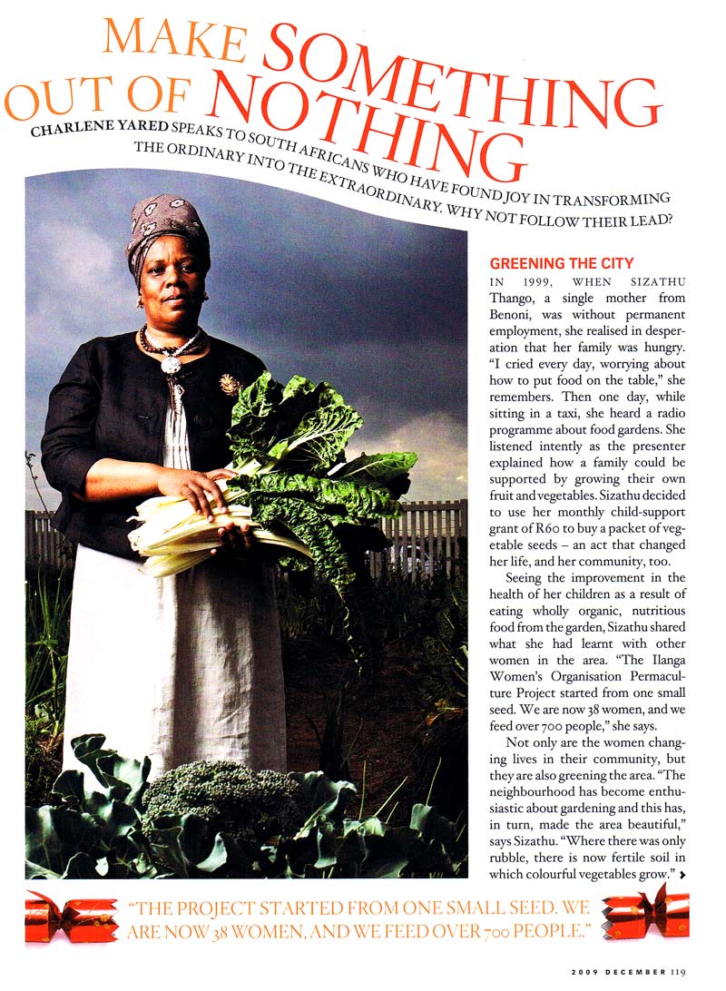 “We had nothing when the project started in 2001, but now we are fully-funded and are able to feed, as well as teach people about how to make a food garden in their own backyards,” says Sizathu. “Sometimes I don’t believe that this has all happened – but then I look around and see all the healthy faces and I realise just how much it’s changed our lives. We are also doing our bit to green the environment.”