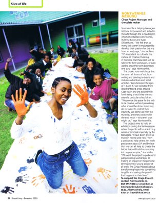 Her message to South Africans, she says, is Vukuzenzele! [Rise up and do something good for others.]