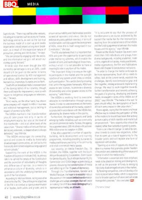 “South Africa over the last 15 years can be characterised by its profound political and economic transformation, which has impacted all spheres of life for its citizens. Since 1994, the country has moved from racial discrimination to a non-racial democracy, where the rights of South Africans are protected in the Constitution,” says Lumko Mtimde, Chief Executive Officer of the Media Development and Diversity Agency (MDDA). But how far has the South African media come? To what extent has the sector committed itself to the overall transformational agenda?
