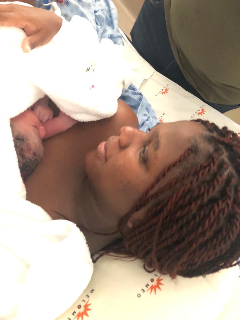 In my 39th week, I went for cervix check to prepare for my induction. I was notified that soon I was going to be in labour – and that it was likely I would not need an induction. On Thursday 23 May, my waters broke as I was going to bed. I remember I kept my calm. I took an Uber with my fiance who had arrived from Zimbabwe, even though my contractions hadn’t kicked in properly yet. I didn’t want to stay at home after that because I didn’t want to be under pressure to rush to the hospital when it became necessary. I didn’t want something dramatic! Charlene did join us at the hospital when my contractions got regular and intense. She was there the whole time and I held onto her. She created such a calming environment in such a tense situation. I remember I had moved 1 cm in 4 hours and all I wanted was an epidural. I asked the nurses for an epidural, but was refused by them, saying it was too early to administer. In the face of that, my doula encouraged me to keep going and to stay strong as I was birthing my angel.
